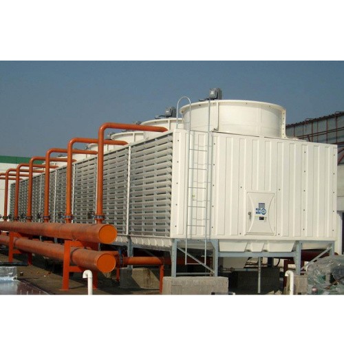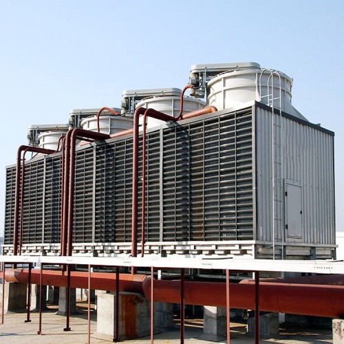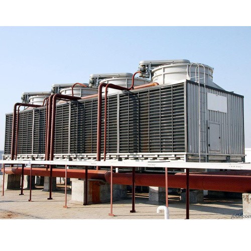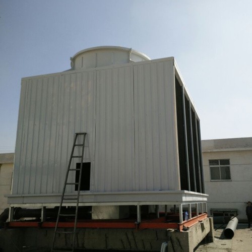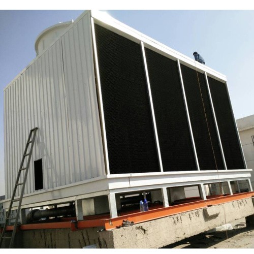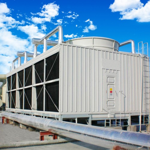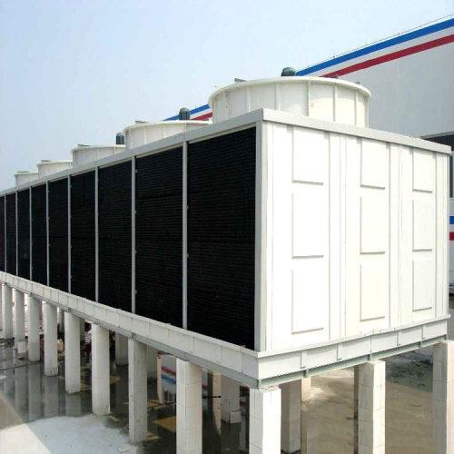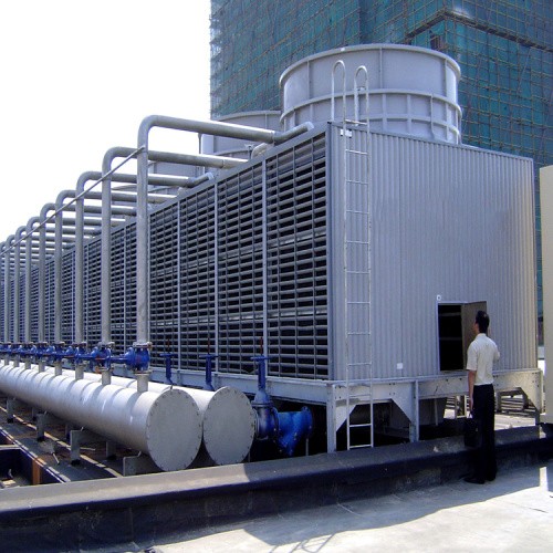 横流式冷却塔,水流从塔上部垂直落下,空气水平流动通过淋水填料,气流与水流正交的冷却塔。横流式冷却塔采用两侧进风,靠顶部高性能的风机,使空气经由塔两侧的填料,与热水进行介质交换,湿热空气再排向塔外。填料采用两面有凸点的点波片,通过安装头使点波片粘结成整体,以提高刚性,两面的凸点还可以避免直接滴水,因此提高了水膜形成能力,填料尾部设有收水措施。