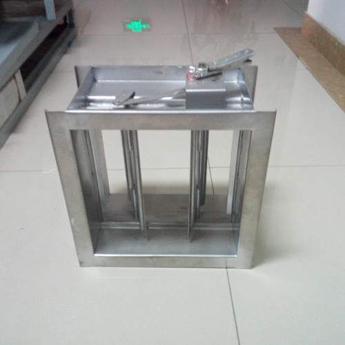 (2)手动调节阀体构架用2毫米镀锌板冷轧成型后,以二氧化碳气体保护焊接或由普通Q235板加工焊接而成;叶片用1毫米镀锌板冷轧为瓦楞形,两片合成点焊插方轴,或2毫米G235钢板冷压成形,单片冲孔插方轴或焊圆轴。