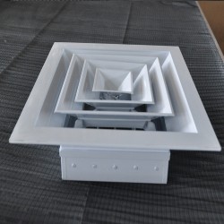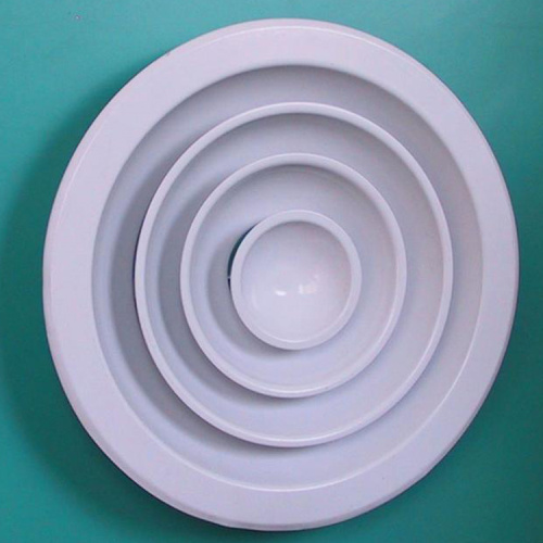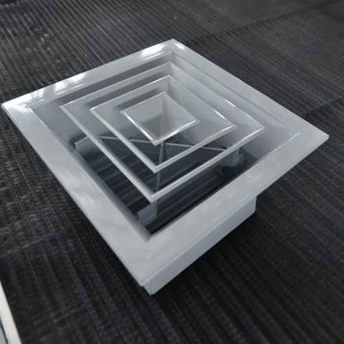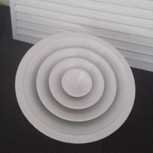 散流器为多层锥体结构,一般安装于冷暖房的天花板上,其吹出气流属贴附型,具有内部诱导性佳。送风温差大。吹出气流均匀、能抑制体感气流等特点。